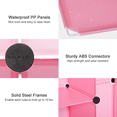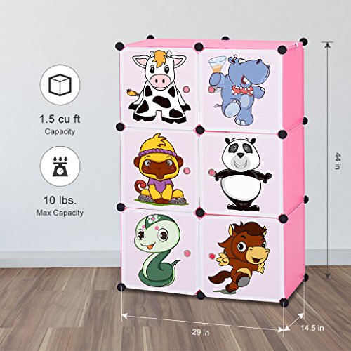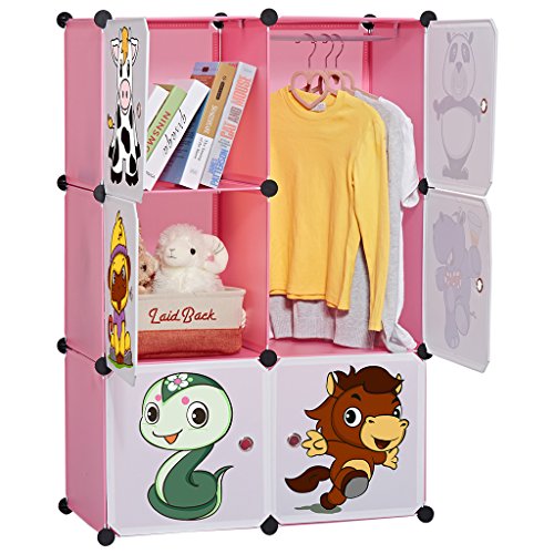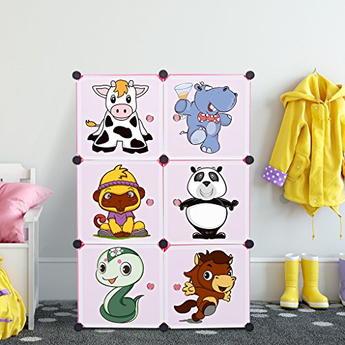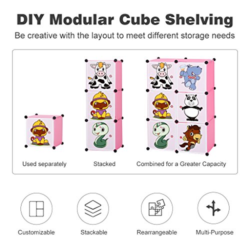 Studio : LANGRIA Publisher : LANGRIA Product Description Be creative with the customizable layout of the cube organizer This LANGRIA DIY children modular 6-cube shelving closet with one removable hanging rod is perfect for a modern home with children around. The panel doors have cute animal cartoons, perfect for your child's bedroom, or playroom. You can build the cubes together to form a larger closet organizer or separate them into a couple of matching cube shelves. Customize the shape of the organizer and put it together and take it apart to reconfigure as many times as you want!