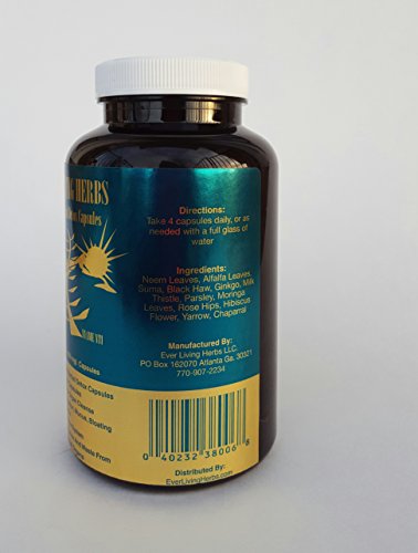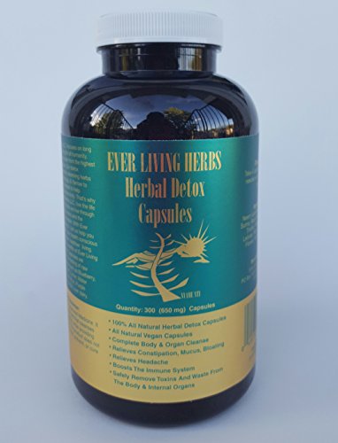 -. Binding : Health and Beauty -. Brand : Ever Living Herbs -. Color : Green -. EAN : 0040232380068 -. Feature : Ever Living Herbs Products are 100% all natural, Cleanse the body naturally, eliminate constipation / Full of nutrient rich herbs. Good for constipation, congestion, & upset stomach. This is not a laxitive. / Gently, Safely, and Naturally remove processed foods and meats, flush impurities and toxins from the body, blood and internal water.**** / Purge your organs and intestines, while promoting weight loss , increased energy naturally, focus, endurance and stamina**** -. IsAdultProduct : 0 -. Label : Ever Living Herbs, LLC -. LegalDisclaimer : This is not FDA approved medicine. It is an effective detoxicant that energizes the human body to rid itself of toxins and revitalizes it to promote general well being. This product does not claim to diagnose, treat, prevent, or cure any disease. -. Manufacturer : Ever Living Herbs, LLC -. MPN : ELH -. PackageQuantity : 300 -. PartNumber : ELH -. ProductGroup : Health and Beauty -. ProductTypeName : HEALTH_PERSONAL_CARE -. Publisher : Ever Living Herbs, LLC -. Studio : Ever Living Herbs, LLC -. Title : Ever Living Herbs Natural Herbal Detox 300 Capsules Ital -. UPC : 040232380068