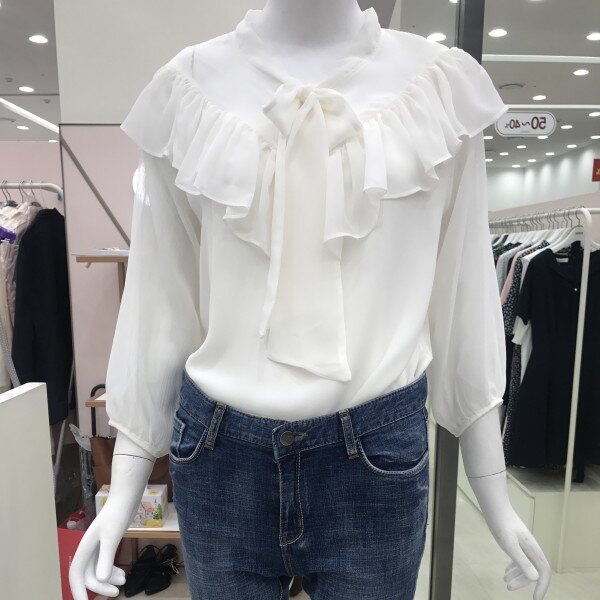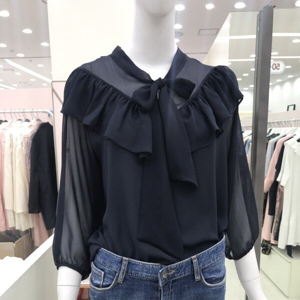 시스루느낌의 블라우스로 여성스러우면서도 캐주얼한 디자인으로 실용성이 높은 제품입니다.가슴둘레 : 104총기장 : 59