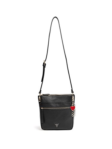 Product Description This crossbody is a must for the fashion maven who's always on the go with its pebbled faux leather, shiny gold-tone hardware and removable GUESS charm keychain. Top zipper closure. 0