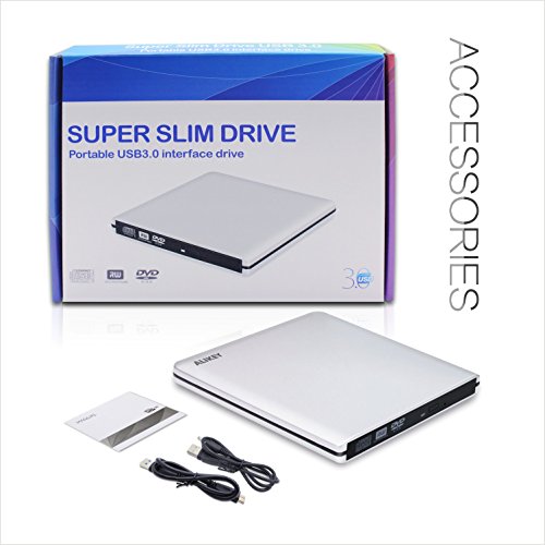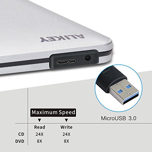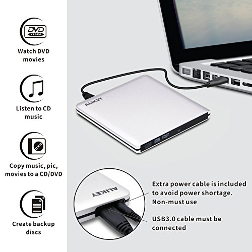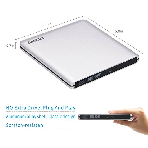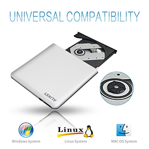 External DVD Drive,ALIKEY USB 3.0 CD/DVD-RW Writer Burner All-aluminum Ultra Slim Portable DVD Drive for Laptop and Desktop PC Windows Linux OS Apple Mac Macbook Pro (Silver)