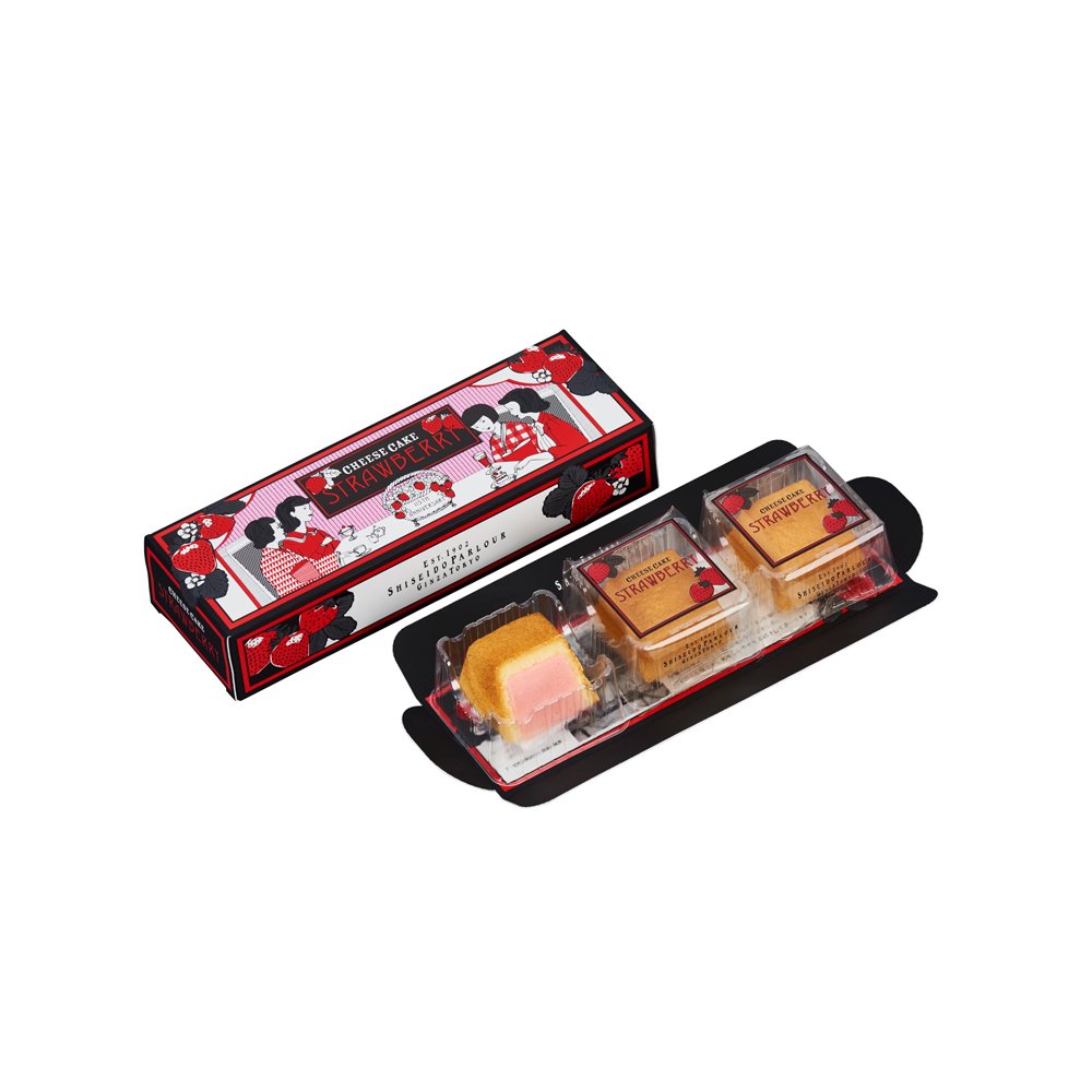 【原材料】チーズ、小麦粉、砂糖、バター、乳等を主要原料とする食品、液鶏卵、水あめ、無糖練乳、苺果汁調製品、苺ペースト、食塩、香料、安定剤(ローカスト)、着色料(ラック、紅麹、クチナシ)、酸味料、(原材料の一部にゼラチンを含む)
