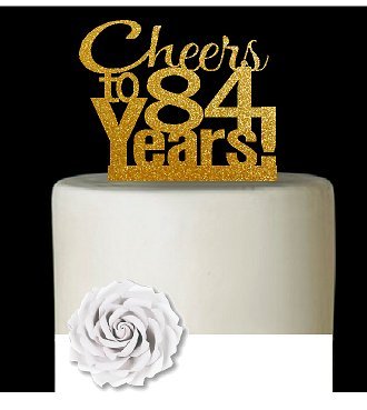 CakeSupplyShop Item#084CTA - 84th Birthday / Anniversary Cheers Super Gold Glitter Sparkle Elegant Cake Decoration Topper