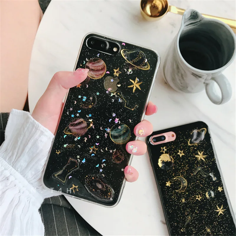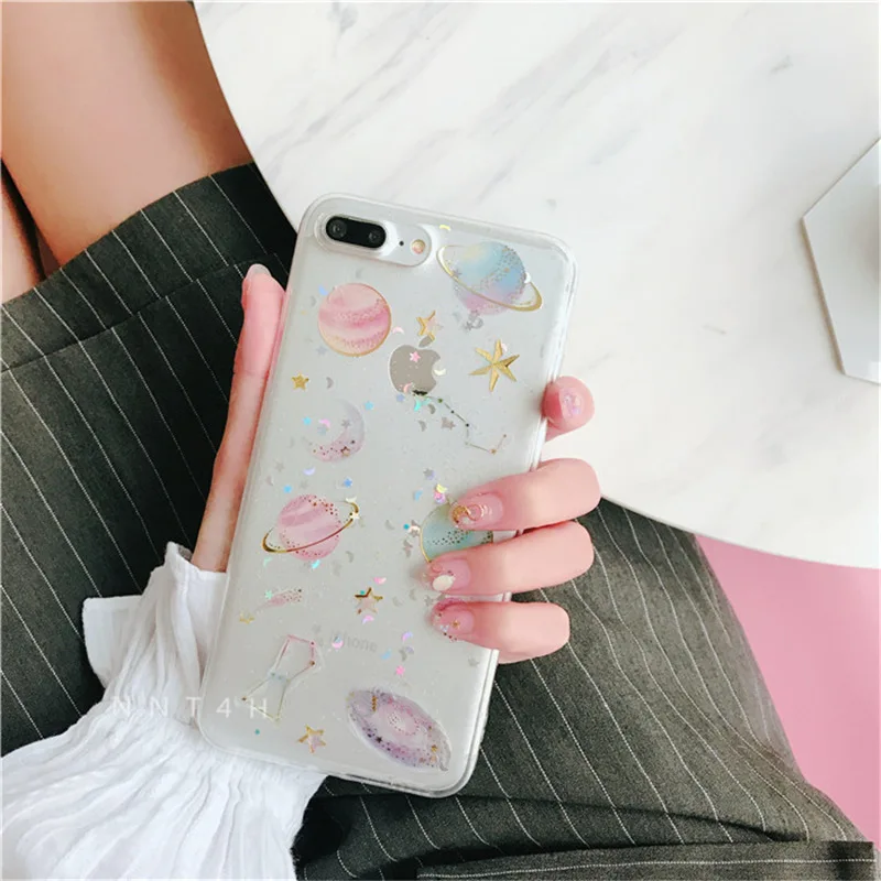 Features:Space planet Bling Glitter soft silicone case