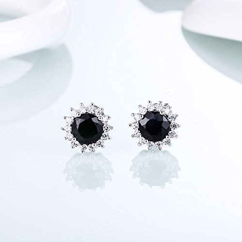 SUNFLOWER DESIGN : Fashion and Novel Sunflower Design, one natural Black Sapphire with perfect cubic zircons, make this 925 sterling silver stud earrings special, noble & shiny!