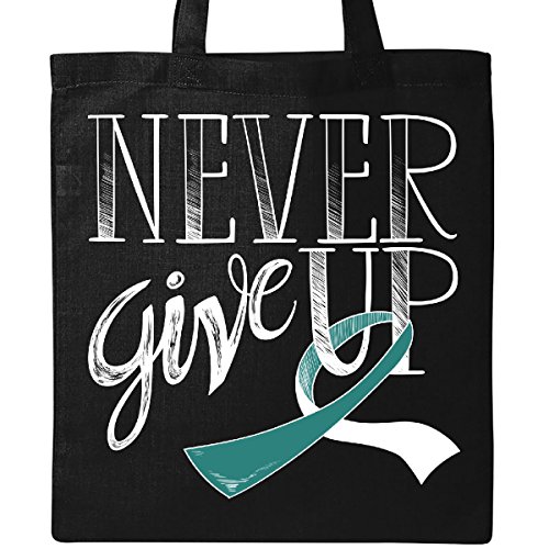 Inktastic Never Give Up- Cervical Cancer Survivor with Teal and White Tote Bag