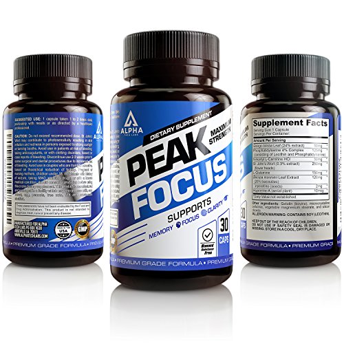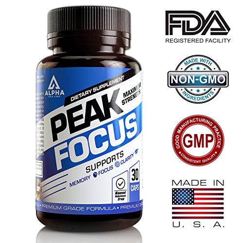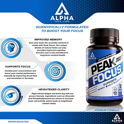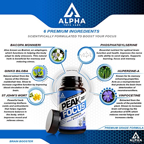 A GOLD STANDARD BRAIN SUPPLEMENT - Alpha Tech Labs nootropic brain booster, Peak Focus, was developed using only the most premium ingredients that work synergistically to provide you with the highest levels of mental performance and energy