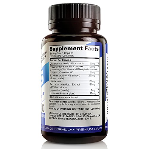 All Natural Brain Booster Nootropic Supplement For Enhanced Memory, Focus, & Mental Clarity - Formulated For Max Results - Ginkgo Biloba, Bacopa...