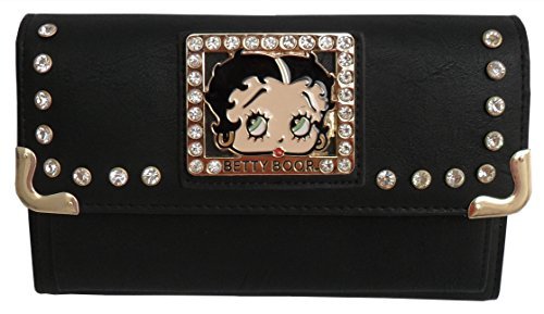 -. Title : Betty Boop Clutch Wallet Bag with Chain- Stone and Gold Tone Stud Black
