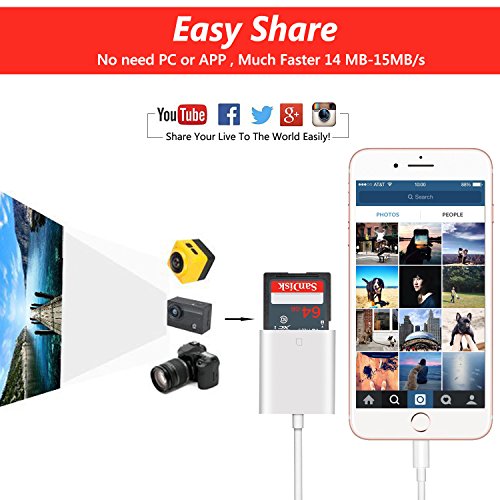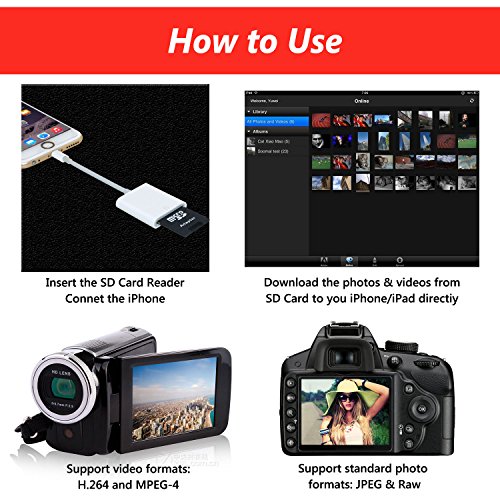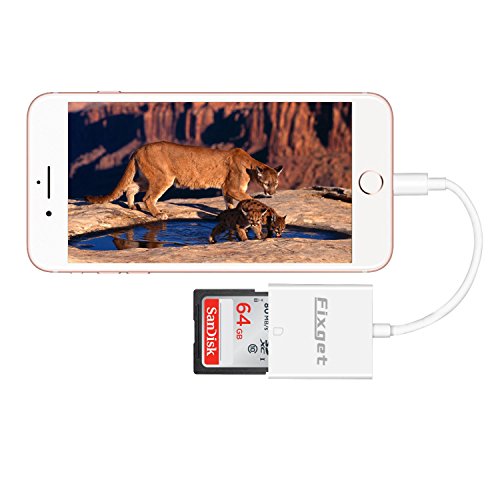Fixget Trail Game Camera Card Viewer Reader for iPhone iPad, SD Card Camera Reader Adapter for Apple iPhone 5/5s/6/6s/6 Plus/7/7 Plus/iPad Mini/Air