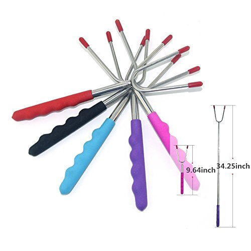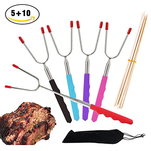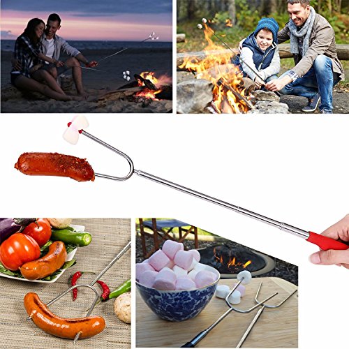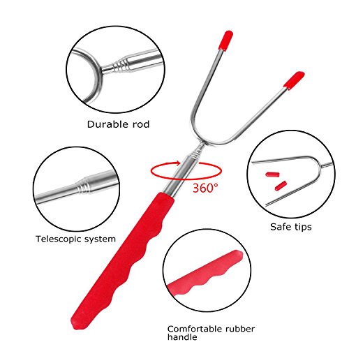 ✔Extendable & Safe for Children --- 45" Extra Long Extendable Telescoping forks keep you and kids stay away from campfire, patio fire pit. The comfortable rubber handle with finger indents gives you a firm, steady grip and anti-hot for your hand
