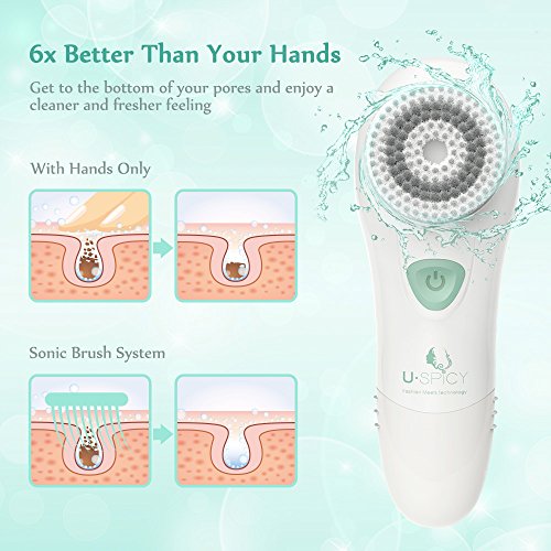 Sonic Facial Brush, USpicy Electronic Face Brushes For Cleansing With IPX6 Waterproof, Gentle yet Effective Skin Exfoliating Cleansing System for Deep...