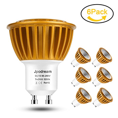 GU10 LED Bulbs, 7Watt COB LED Light Bulbs 3000K (Warm White), 70W Halogen Bulbs Equivalent, 600lm, 120V, 60° Beam Angle LED Spot Light for Tracking Light, Recessed Light by Jpodream - 6 Pack of Units