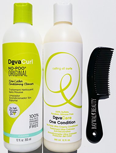 -. Binding : Misc. -. Brand : DevaCurl -. EAN : 0798711603336 -. Feature : DevaCurl No-Poo is a zero lather conditioning cleanser.This no lathering conditioning cleanser guarantees the healthiest, bounciest curls.Sested use:Wet curls thoroughly. Massage a liberal amount between palms and work vigorously throughout hair and scalp. Rinse well. For maximum hydration, follow with DevaCurl One Condition. / DevaCurl One Condition is an ultra creamy daily conditioner that provides maximum hydration and is perfect for all curl types. This light hold moisturizing and defining gel dissolves instantly when applied to wet hair. As it dries, Light Defining Gel forms a moisture-protective cast to enhance curls. / With Free Shower Comb -. IsAdultProduct : 0 -. Label : DevaCurl -. Manufacturer : DevaCurl -. Model : DEVA-NPOC-BU24 -. MPN : B01J47JYKQ -. PackageQuantity : 1 -. PartNumber : B01J47JYKQ -. ProductGroup : Beauty -. ProductTypeName : BEAUTY -. Publisher : DevaCurl -. Studio : DevaCurl -. Title : Devacurl No-poo Shampoo & Devacurl One Condition Duo 12oz With FREE Shower Comb -. UPC : 798711603336