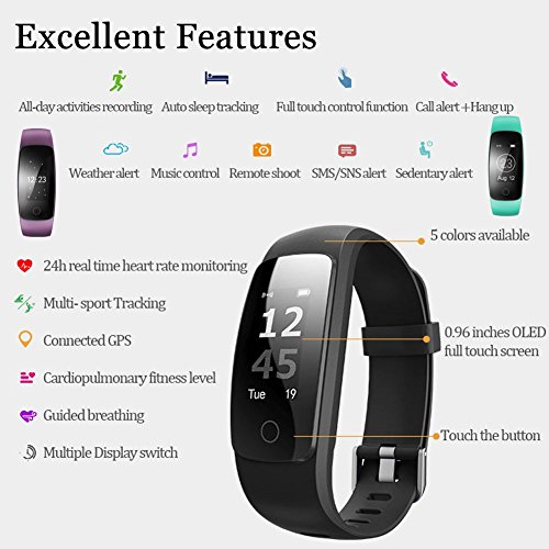 - 【Heart Rate Monitor】This sport tracker can easily measure your all-day activities includes heart rates. It can display steps taken, distance traveled, calorie burned, etc. You can also check your latest history sports data. Let these activity data be your guide and you will get a better understanding your fitness level.