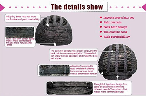 ADJUSTABLE WIG CAP SIZE: Rose breathable wig cap with plastic hooks on the back of wig cap to adjust the wig perimeter for fitting different head sizes;Wig cap size: average(22").