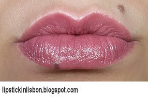 Semi-sheer moisturizing lipstick, rosy brown w/ discrete iridescent shimmer. Easy-to-wear formula w/ rich glossy shine