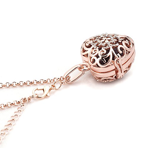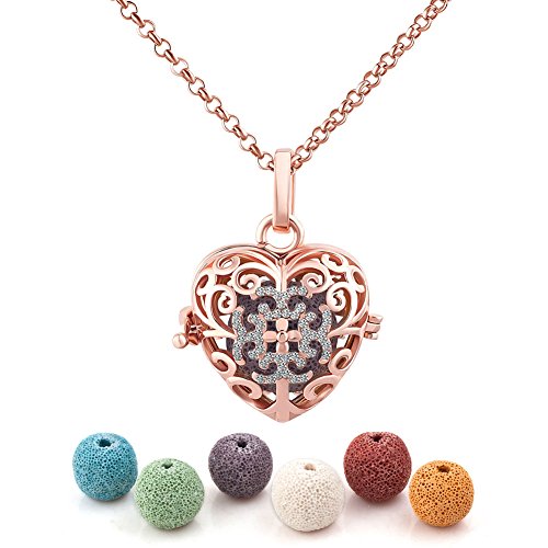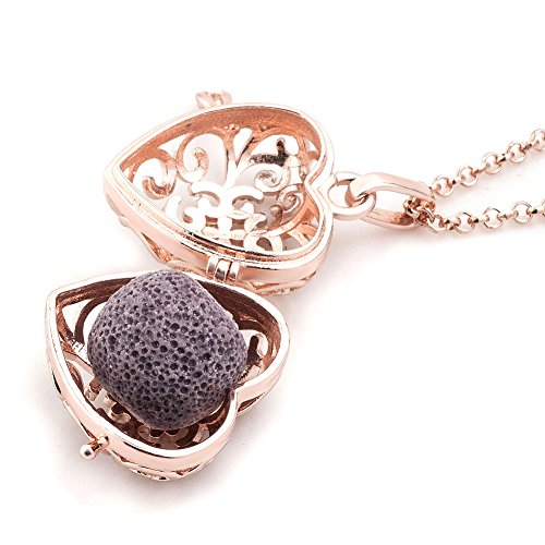 Third Time Charm Natural Lava Rock Stone Heart Aromatherapy Necklace For Essential Oil Diffuser Locket Pendant With 6 Lava Beads (Rose Gold Plated)