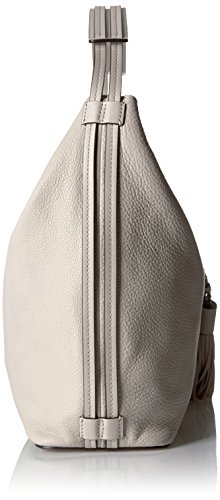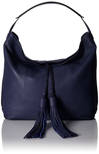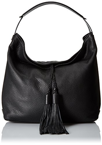 Pebble-leather hobo bag featuring contrast piping trims and braided tassels at front