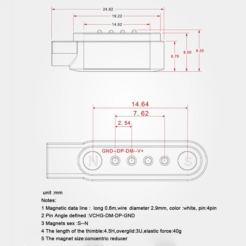USB 2.0 Male to 4 Pin Pogo cable:USB Magnetic Charging Cable