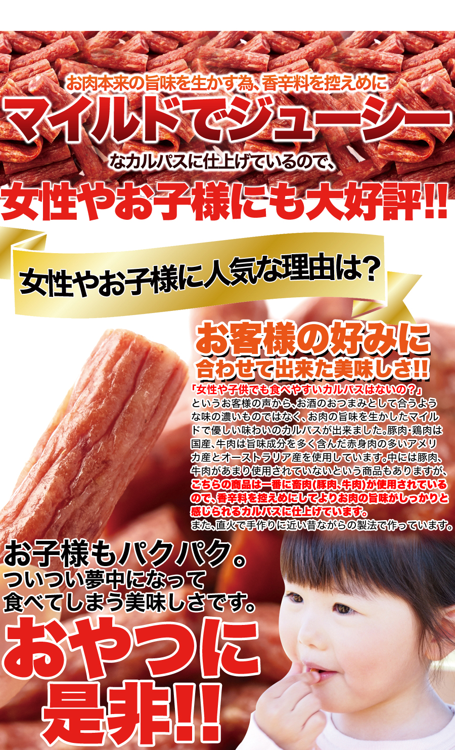 ●原材料名:畜肉(豚肉、牛肉)、鶏肉、豚脂肪、植物性たん白(大豆由来)、糖類(粉末水あめ、砂糖)、食塩、香辛料、調味料(アミノ酸等)、リン酸塩(Na)、pH調整剤、酸化防止剤(ビタミンC)、保存料(ソルビン酸K)、発色剤(亜硝酸Na)
