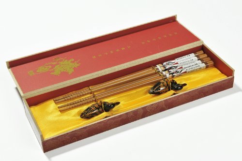 Chopsticks "Beijing Opera Masks": Fine set of asian chopsticks made of bamboo in gift box (2 pairs of chopsticks and chopstick rests with duck design) - CS-B-S2-04 (US)