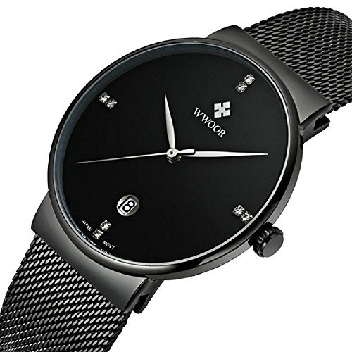 -. Feature : どんな服装でも外出先でのペア:非常に静かでメンテナンスは少なく、シンプルで贅沢で古典的な外観。 毎日の着用にも十分なカジュアルですが、ビジネス用の服装でもすばらしいです。 この腕時計はあらゆる衣装とあらゆる機会にぴったりです。 それは簡単に通常の衣装をスパイスアップし、あなたの人生にスタイルを追加することができます / 心配することなく購入:各時計は24ヶ月の保証と90日間の100%返金の全額返金保証が付いています。私たちはお客様を気にしています。ご不満がありましたら、Amazonにメッセージをお送りください。今すぐカートに入れるボタンをクリックして、Amazonのカジュアルなビジネスステンレスメッシュブレスレット時計をお届けします。 / ユニークでエレガントデザイン:シンプルで贅沢なブラックダイヤル、カレンダー、厚手で快適なブラックメッシュステンレススチールブレスレット。 高硬度ミネラルガラスウォッチフェイス; IPブラックメッキの時計ケースは消えません。 ケース直径:40mm; バンド幅:20mm; ケースの厚さ:10mm; バンドの長さ:メンズスタンダード。 ラグジュアリーなデザインと履き心地の良い履き心地、これは完璧な旅行&ビジネスカジュアルウォッチです / 完璧なギフトボックス(ボーナス付き):この時計は、スタイリッシュで豪華なペーパーウォッチボックスに入れられています。また、時計ケース、眼鏡、または必要なものを清掃するための高品質のマイクロファイバーを無料で提供しています。この腕時計は、他の売り手の安価で軽薄なパッケージとは異なり、あなた自身またはその特別な人のための完璧な贈り物になります。 / 耐久性と快適性:日本のクォーツムーブメントとバッテリーは正確な時間管理と3年以上の耐用年数を提供しますが、確かにバッテリーも交換が容易です。適切な腕時計の重量、豪華な黒のステンレススチールのメッシュのブレイクレットと滑らかなメッシュのステンレススチールのブラスレットの表面、これらはすべてこれを超エレガントで着心地のいい時計にします。さらに、この時計には無料のリンクリムーバーが付属していますので、指導後に自宅でバンドの長さを調整することができます