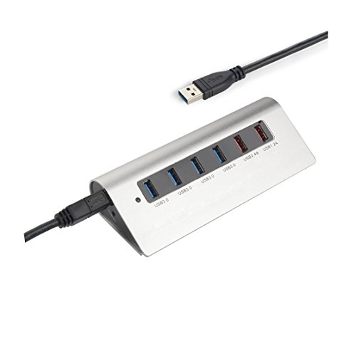 ANGROC Slim Protable Aluminium Alloy USB 3.0 SuperSpeed Hub 6-Port Integration of 4 USB 3.0 Port and 1 USB 2.4A Charging Port for iPad& 1 USB 1.2A Charging Port for iPhone-(Silver)