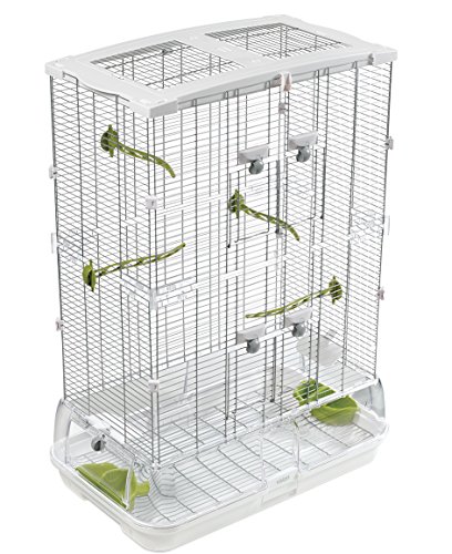 - Double height; Equipped with green perches and food/water dishes