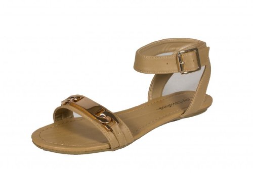 Product DescriptionCity Classified Women's Indy Open Toe Gold Decor Ankle Strap Flat Sandal0