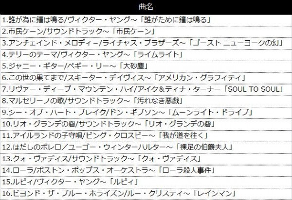 映画「誰がために鐘は鳴る」「市民ケーン」「ゴースト ニューヨークの幻」他、懐かしい映画の音楽を詰めこみました。映画ファンにおススメです!