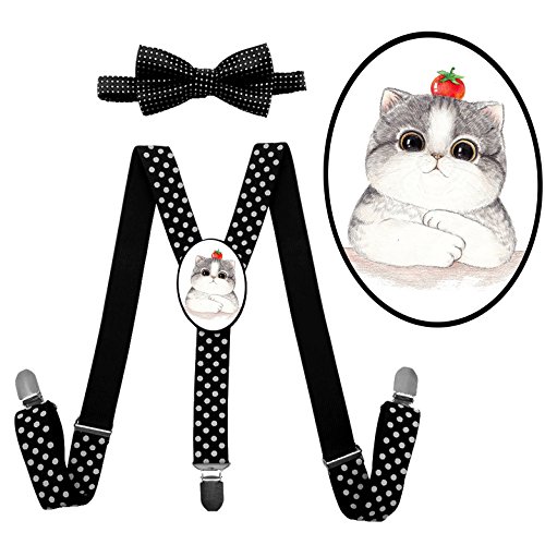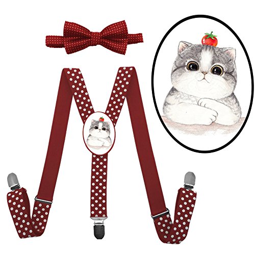 (QZ-Lee)/Accessories/Suspenders Cummerbunds/DIRECT FROM USA/QZ-Lee Apple Cat Suspender Bow Tie/Unisex Suspender/Adjustable Suspender/Y-Back Suspender