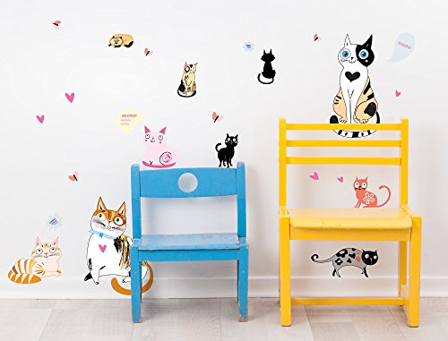 -. Title : I-love-Wandtattoo WAS-10238 Wall stickers Kids "Colorful cats" Sticker Wall Decal Boy Girl