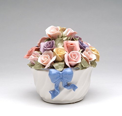 CG SF49009 Blue Ribbon Roses in White Pot Music Box Figurine