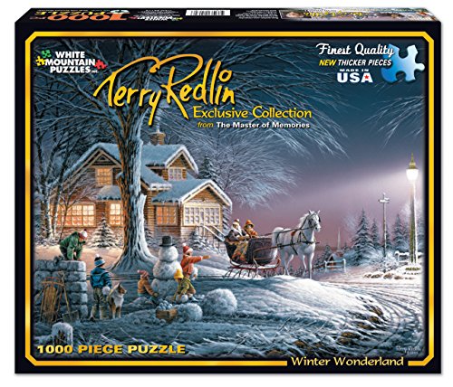 -. Binding : Toy -. Brand : White Mountain Puzzles -. Color : Winter Wonderland -. EAN : 0787799748114 -. Feature : On this magical winter evening the wind is still and the temperature mild enough for kids to fashion both snowmen and snow forts with a horse and sleigh riders as witness. / Artist Terry Redlin is an American artist popular for painting outdoor themes and wildlife, often pictured in twilight. / Every White Mountain Puzzle is proudly manufactured in America with a 100% customer satisfaction guarantee. / All our puzzles contain unique interlocking pieces that are made of sturdy blue chipboard on recycled paper. / 1000 piece puzzles measure 24"x30" - larger pieces for easy handling -. IsAdultProduct : 0 -. ItemPartNumber : 517 -. Label : White Mountain Puzzles, Inc. -. LegalDisclaimer : Choking hazard. small parts. not for children under 3. -. Manufacturer : White Mountain Puzzles, Inc. -. Model : 517 -. MPN : 517 -. NumberOfItems : 1 -. PackageQuantity : 1 -. PartNumber : 517 -. ProductGroup : Toy -. ProductTypeName : TOYS_AND_GAMES -. Publisher : White Mountain Puzzles, Inc. -. Studio : White Mountain Puzzles, Inc. -. Title : White Mountain Puzzles Winter Wonderland - 1000 Piece Jigsaw Puzzle -. UPC : 885646001532