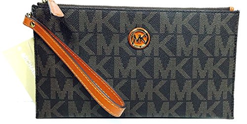 -. Feature : MK Signature PVC / 6 credit card slots and one slip pocket / Measurements Approximately: 10" (Length) x 5 1/2" (Height) / Wristlet strap with 6" long