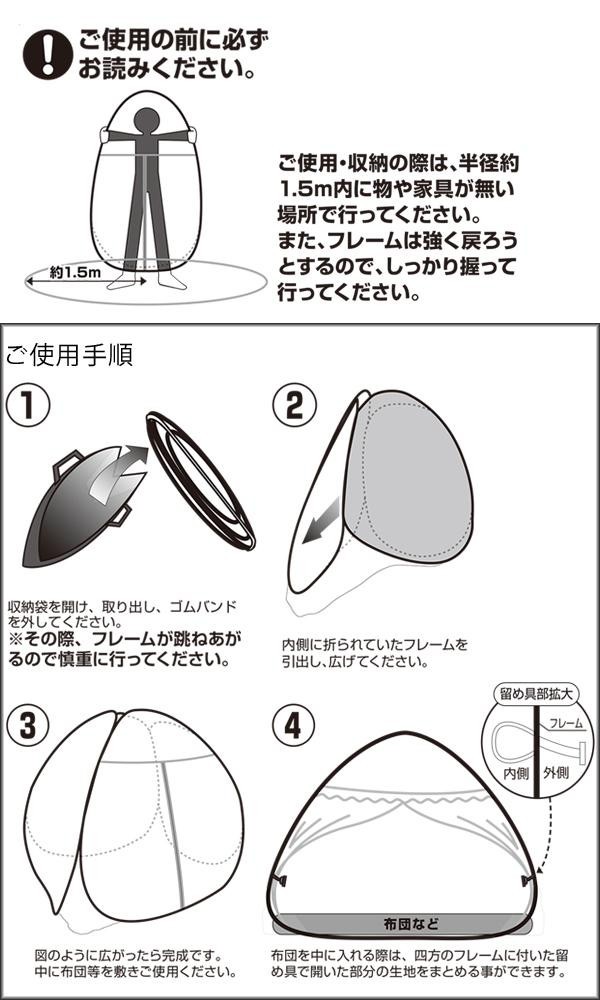 | サイズ | 使用時:(約)200×120×145cm、収納時:(約)62×62×厚み4cm 個装サイズ:62×62×4cm |