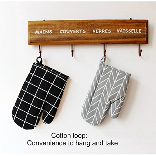- EASY TO CLEAN AND STORE---Machine washable and don’t worry it get dirty or greasy. Each pair of oven mitts with a cotton loop inside so they can be hung in wall hook. Quickly to find and take it, won’t take up space.