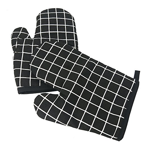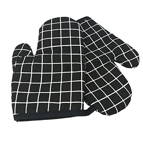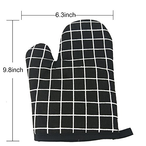 GAXmi Oven Mitts Heat Resistant Oven Gloves for Cooking Baking Kitchen Terry 1 Pair of Pot Holder Quilted Cotton Lining for Extra Protection Soft and Washable-Black