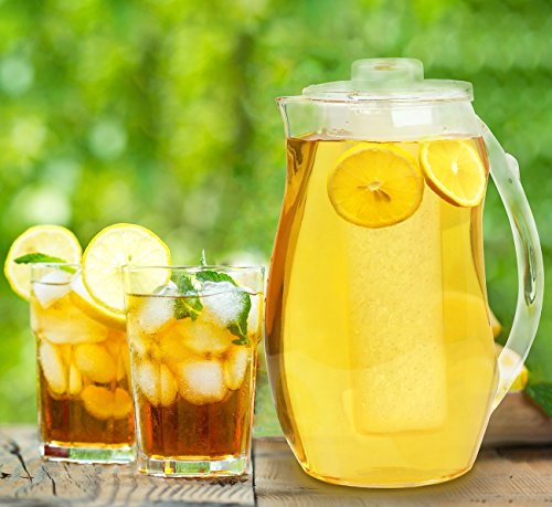 Studio : Estilo Publisher : Estilo Binding : Kitchen Product Description Enjoy your favorite ice tea, lemonade or just plane water in this durable acrylic pitcher complimented with maximum flavor infused with fruit, citrus wedges or spice of your choice using the infuser tube or just fill the Ice core with ice to keep drink freezing cold without melting ice diluting into your beverage. Infusion tube/ice core simply screw onto the cover. Pitcher Holds up-to 2 Liters or 72 Ounces. . Hand wash recommended. 0