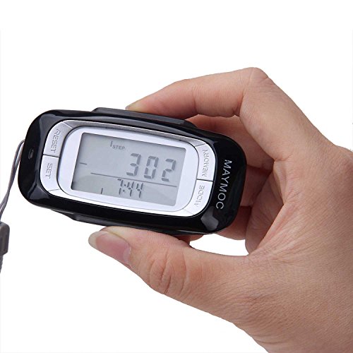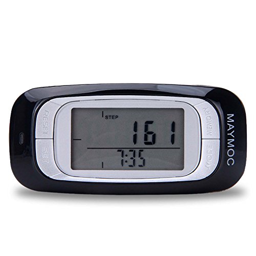 -. Title : MAYMOC Multifunctional 3D Pedometer with Clip and Strap - Accurate Step Counter, Distance Miles and Km, Calorie Counter,7 Day Memory, Daily Target Progress Monitor, Exercise Time 12 Month Warranty