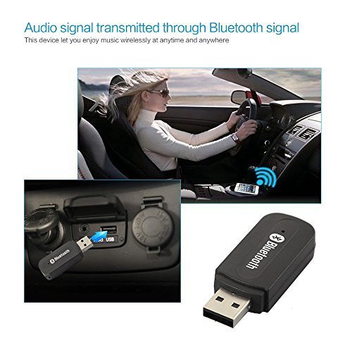 URANT USB Bluetooth Receiver Adapter Wireless Audio Adapter Car Kit Music Receiver Bluetooth Car Adapter Home/Car Stereo Sound System, Portable Speskers, Headphone, Car(Aux in) with 3.5mm Cable -White