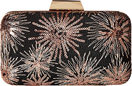Like fireworks this Jordyn Sparkle and Shine Minaudiere bag adds the light to your night. Made of man-made material with sequin detail. Clasp closure. Detachable chained crossbody strap. Flat bottom. Lined interior. Interior slip pocket. Imported. Measurements: Bottom Width: 7 in Depth: 2 1⁄2 in Height: 4 in Strap Length: 48 in Strap Drop: 24 in Weight: 12.4 oz This product may have a manufacturer's warranty. Please visit the manufacturer's website or contact us at warranty@support.zappos.com for full manufacturer warranty details. Please note, the hardware color and interior lining may differ from the color shown in the photo.Feature