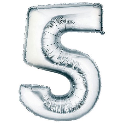 Betallic 15845SB Number 5 Megaloon Foil Mylar Balloon, 40", Silver
