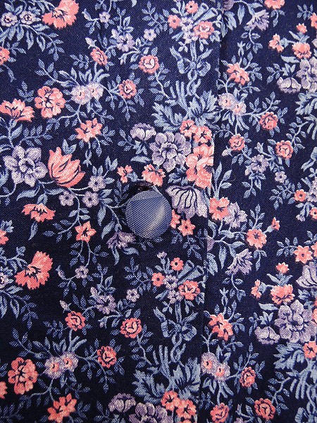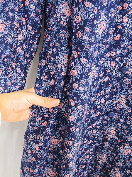 Ladies ブランド- カラー紺ベース メール便不可 コンディション★★★ 素材- 表記サイズ- スタッフコメント裏地無し、タグ無し。右袖口、色ヤケダメージあり。 実寸サイズ 着丈 120 cm 身幅 52 cm 肩幅 38 cm 袖丈 61 cm ※ウエスト・ヒップ以外は平置き採寸