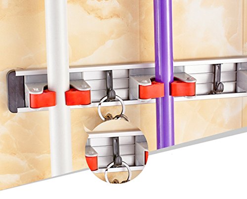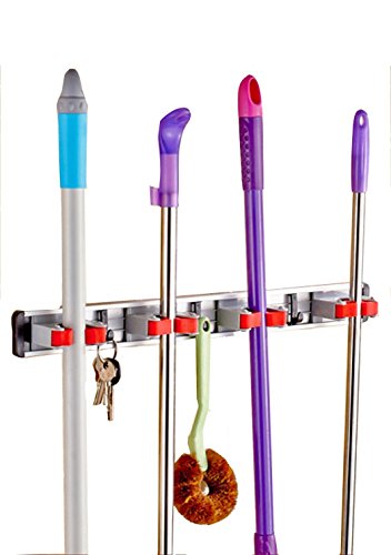 - Space Saving Mop Broom Holder: Clean design and compact.Broom Holder is the most ideal wall-mounted holder that's ever been invented, perfect to save space in garage, gardening shed, pantry, and more! Don't be fooled by the knock-offs. Package include: 1 x Mop and Broom Holder(With a bag of screws and expansion sets)