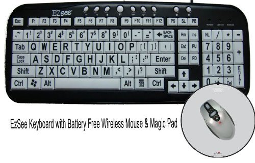 -. Title : Large P.R.Int EZSee by DC - New Improved - USB Wired Computer Keyboard for Low Vision Users- White Keys with Black Letters Bundled With Battery Free Wireless Mouse & Magic Pad