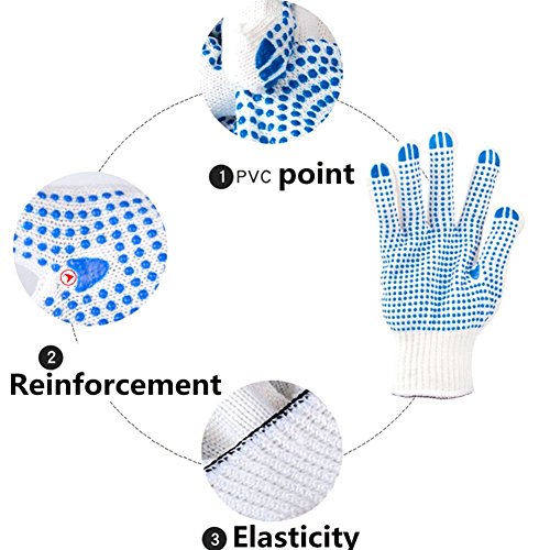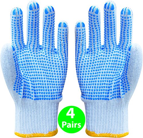 Safety Work Gloves 4 Pairs, LOT - 4 Pairs Per Package Work, Gardening, Gloves with PVC Dots for Hand Protection, Classic Knitted, - Mechanic, Construction, Industry, Garden use, Bulk, Set