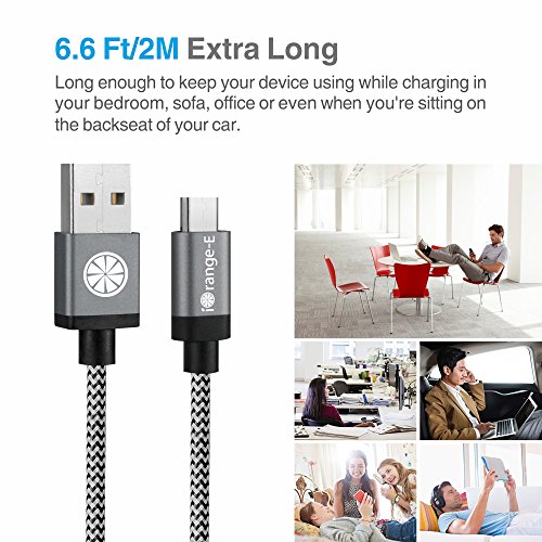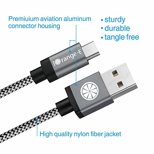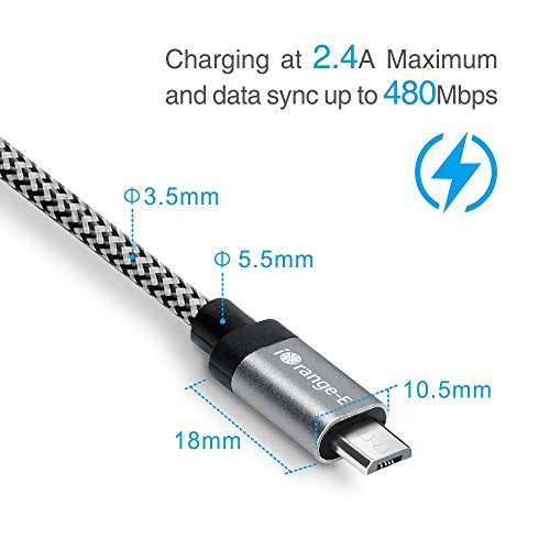 USB Cable, iOrange-E 6.6ft (2M) Micro USB to USB Cable Braided, Quick Charge and High Speed Data Sync for Android, Samsung, HTC, Motorola, Nokia and More, Grey