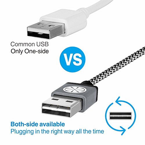 The iOrange-E™ premium branded cable is designed to replace your original cable or add a extra one for convenient data snyc and charge in different occasions. It' s well built with high standard cable which supports maximum 2.4A current transport and 480Mbps data sync. To increase durability and sturdiness, nylon fiber jacket and aviation aluminum are used to cover the wire and connetor which simultaneously makes the cable tangle-free and looks elegant. 6.6 feet(2M) length is ideal for varied usage which will not astrict your device, you can still use your device while charging on a wall adapter in your bedroom,kitchen,office, even at the backseat of the car. USB plugging will not be ever like flipping a coin because of the special same side usb connector design which is available for both side plugging into a usb adapter.